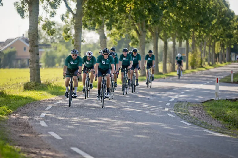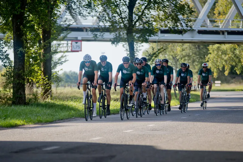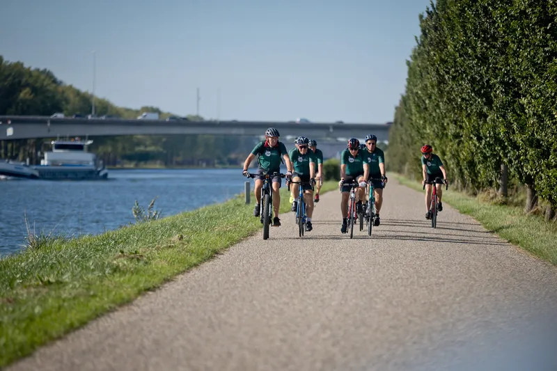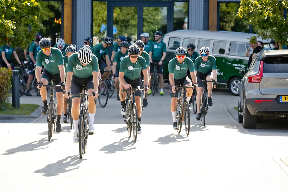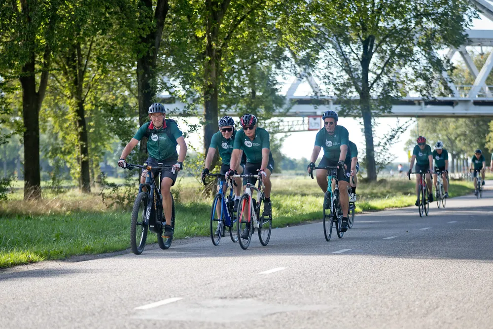 Onder een stralende nazomerzon vertrok een peloton vanaf het hoofdkantoor in Houten, kleurrijk én geheel in het groen. De deelnemers konden kiezen uit twee routes – voor de fanatieke fietser en voor wie het wat rustiger aan wilde doen – zodat iedereen op zijn eigen tempo kon meedoen.