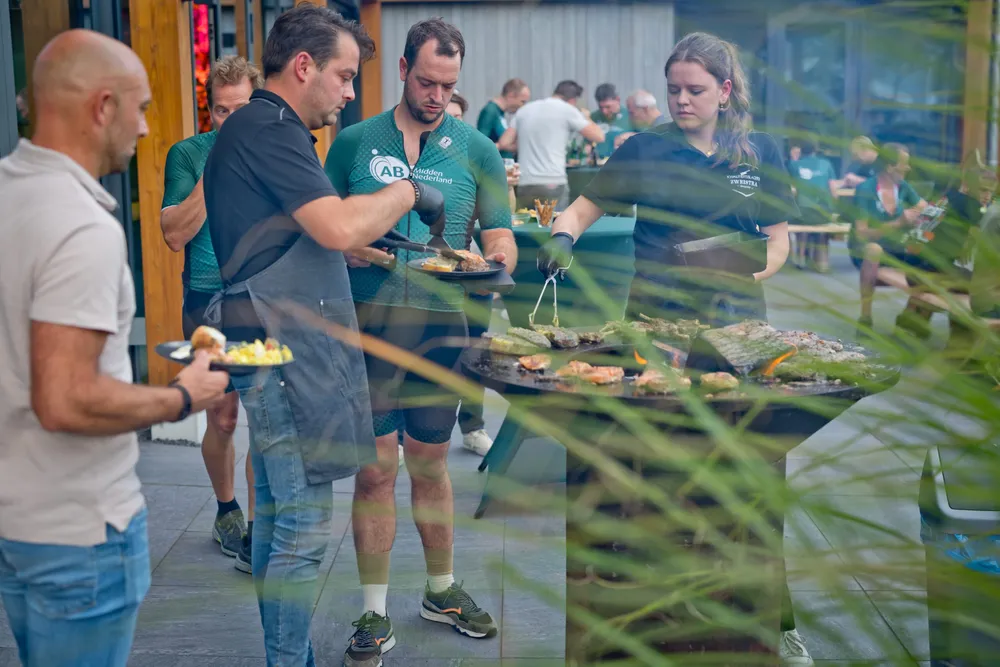 Na afloop van de rit wachtte de deelnemers een welverdiende barbecue bij het kantoor in Houten. Onder het genot van goed eten en veel gezellige gesprekken werd er nagepraat over de route, de wind, het klimmetje op de Utrechtse Heuvelrug en vooral over het plezier van samen fietsen. Gijs Kuilman bedankte de deelnemers voor hun motivatie en enthousiasme en de deelnemers spraken hun waardering uit voor de organisatie.